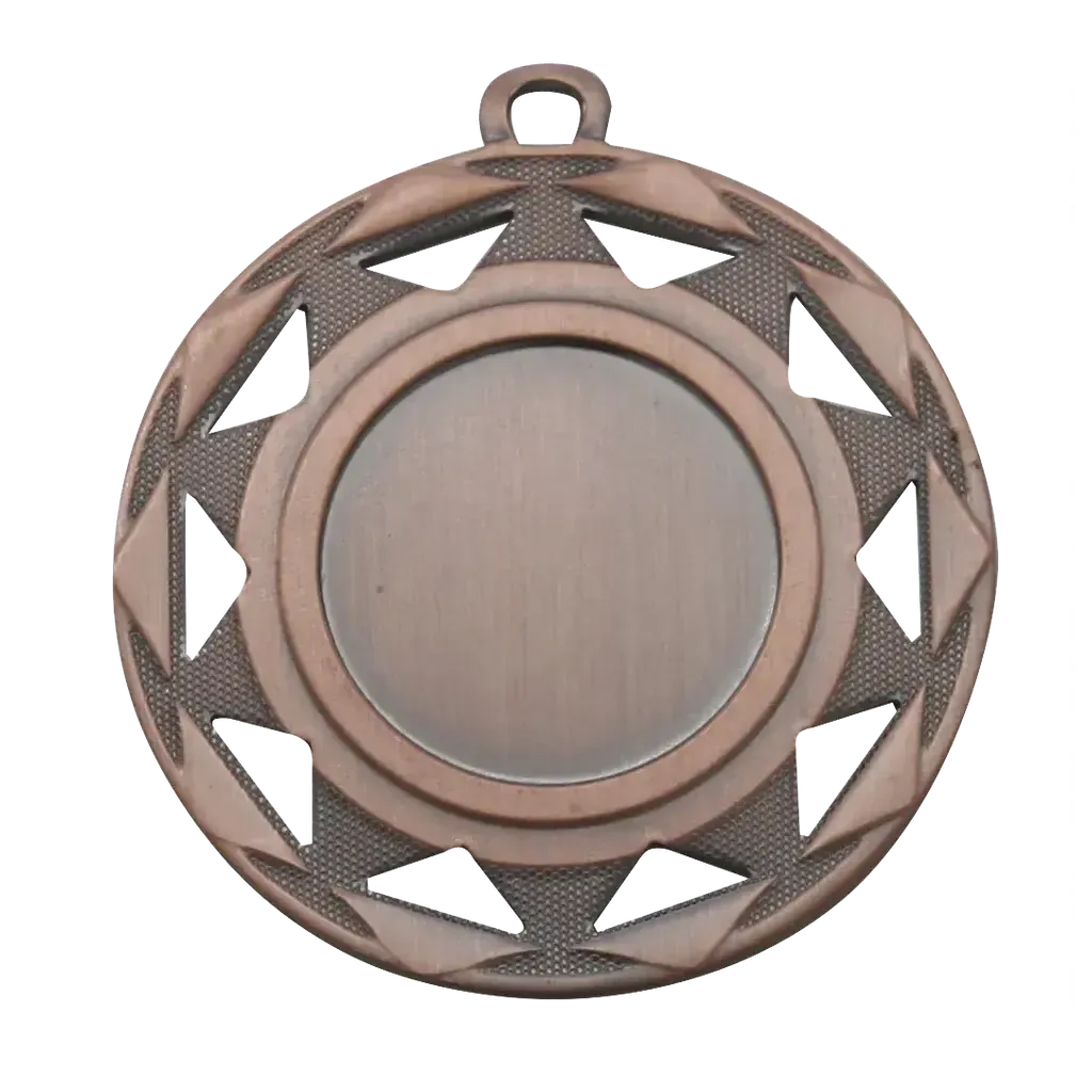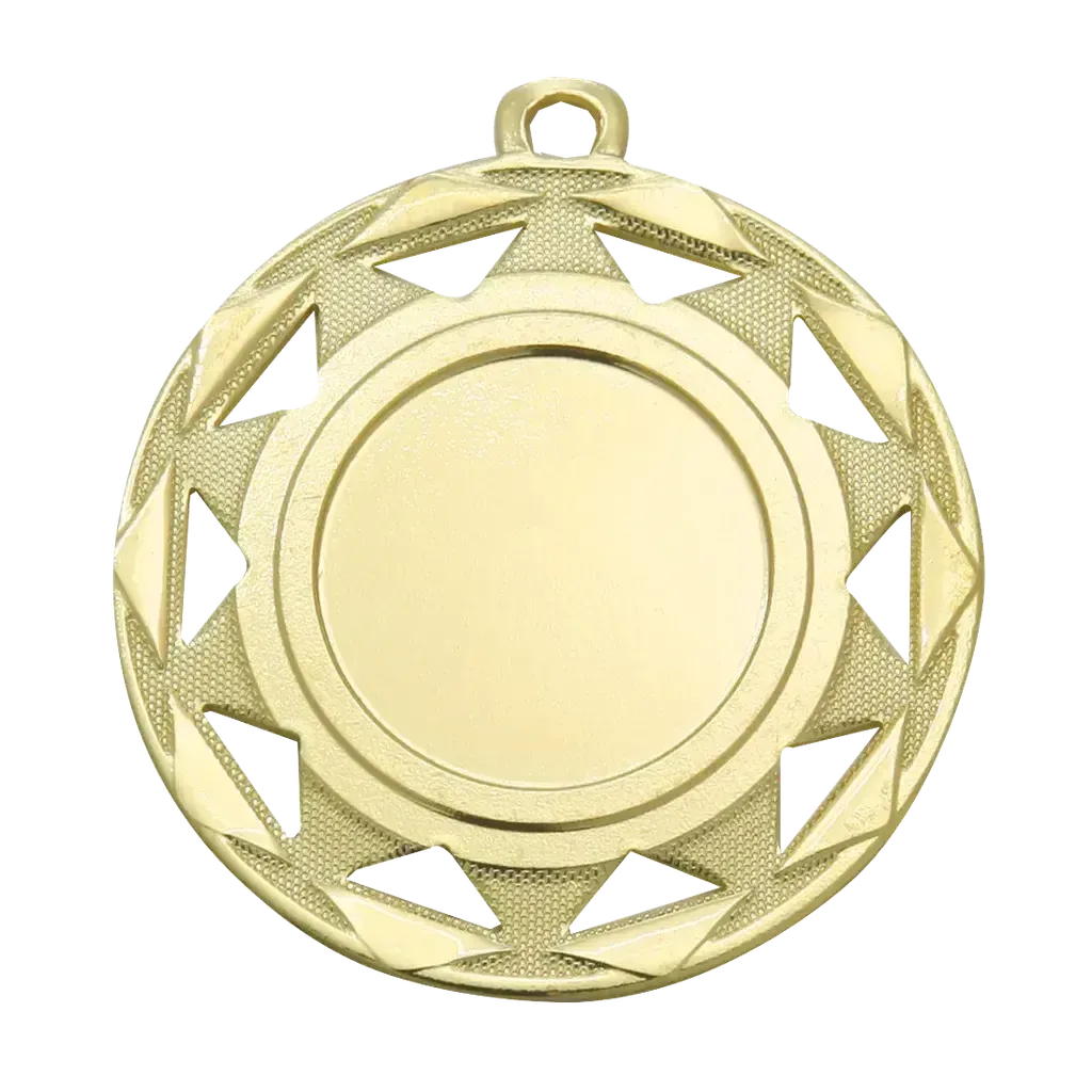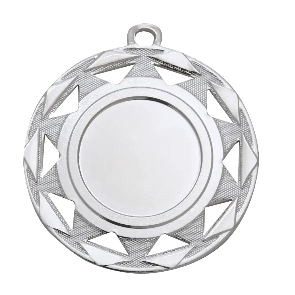 Tyylikäs mitali näyttävällä geometrisella reunakuviolla. Keskiosassa sileä pinta, joka sopii erinomaisesti kaiverrukselle tai tarralle